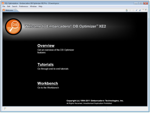 After you install and load the DB Optimizer, and right after the splash screen it will ask for the workspace where all the files of this optimization project will be saved. I think the most difficult part is over by now. From here the tool is very easy to use and self-explanatory. The very first screen has three sections: overview, tutorial and workbench.