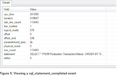 Figure 5, on the other hand, shows the details of the first sql_statement_completed event to be recorded in my session. The event includes some of the same fields as the previous one, but additional fields as well, such as physical_reads and row_count.
