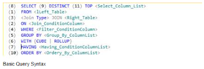 Logical processing stages decide the order in which the different clauses are logically processed. Below is the basic query syntax along with the logical order number in which it will be executed: