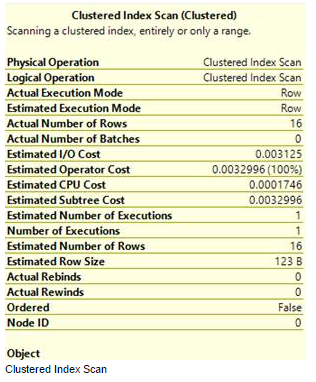 In the bottom part of the tool tip message you can see the Object and Output List, which shows other aspects related to the operator like used object name, output, arguments, etc.The above details are related with the estimated execution plan; there is one more form of graphical query execution plan available, i.e. Actual Execution Plan (Ctrl+M). This is the plan that the engine generates at the time of query execution, whereas query execution is not required to get the Estimated Execution Plan.Below is the tool tip message image of the Clustered Index Scan operator in the Actual Execution Plan: