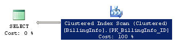 By looking at my two different stored procedure calls you can see the first execution has a begin date and an end date that represents a years’ worth of billing information. Whereas the second call, is only returning three days worth of data. As already state the compiled execution plan will be based on the first EXEC statement above. When I run these statements here is the execution plan used for both of these stored procedure executions: