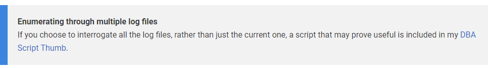 Of course, as DBAs, I will leave it to you to be to be creative in the development of useful queries for your environment. Heck, you can even add a Full Text index if you like. In fact, if you notice in the code download, the SQL_ErrorLog DDL adds an identity column called LogID to facilitate the creation of such a Full Text index. That process is an article in itself and one which I will tackle next.
