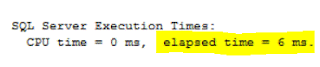 | SET statistics time ON SELECT * FROM batchtest WHERE firstname LIKE 'Joh%' ORDER BY firstname ASC SET statistics time OFF |