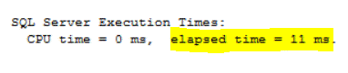 And the time needed to execute the query in row processing mode is 11ms as shown below: