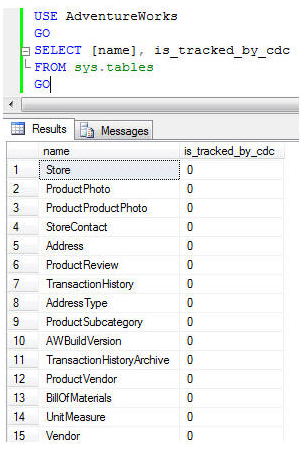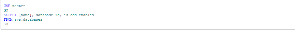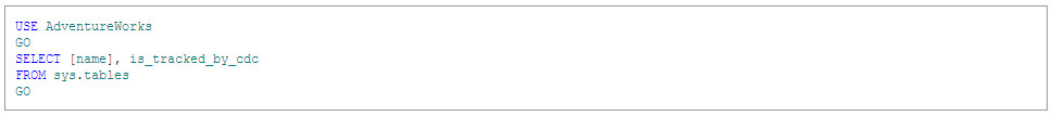 The CDC feature can be applied at the table-level to any database for which CDC is enabled. It has to be enabled for any table which needs to be tracked. First run following query to show which tables of database have already been enabled for CDC.