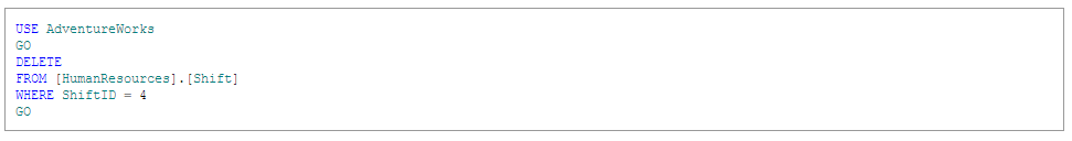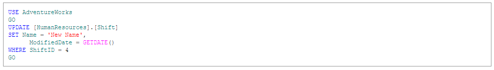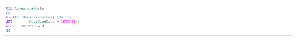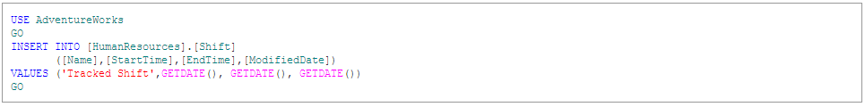 Lets run an INSERT operation on the table HumanResources.Shift.